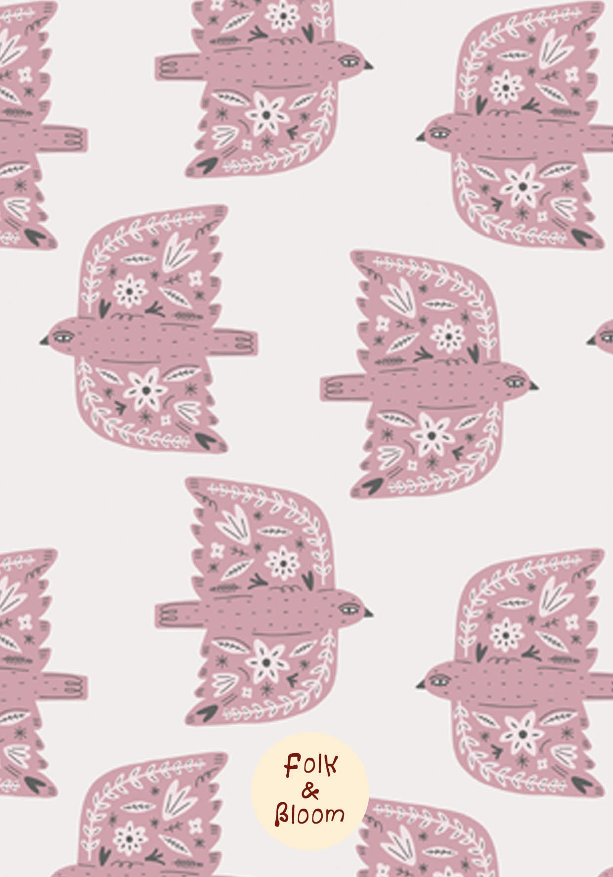 Floral Wallpaper for Kids’ Rooms – Folk Birds Pink